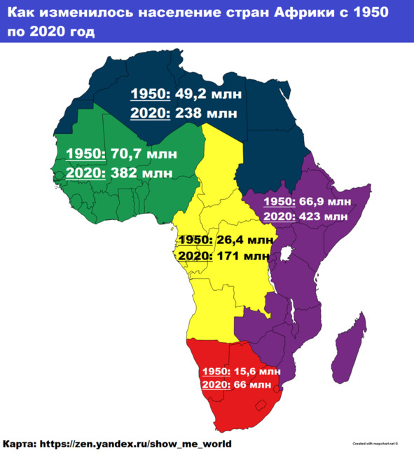 Политика планирования семьи и снижение рождаемости в Африке пришлись на 1960-е годы в Египте, Кении, Тунисе, Гане, Марокко, а затем в Зимбабве, Алжире, на острове Маврикий. Наибольшие темпы роста населения зафиксированы в Нигере, Мали, Чаде, Бурунди, Демократической Республике Конго и Сомали, в которых уровень фертильности составляет 6—7 и более, во всей Африке он равен 4,8, то есть самый высокий в мире.