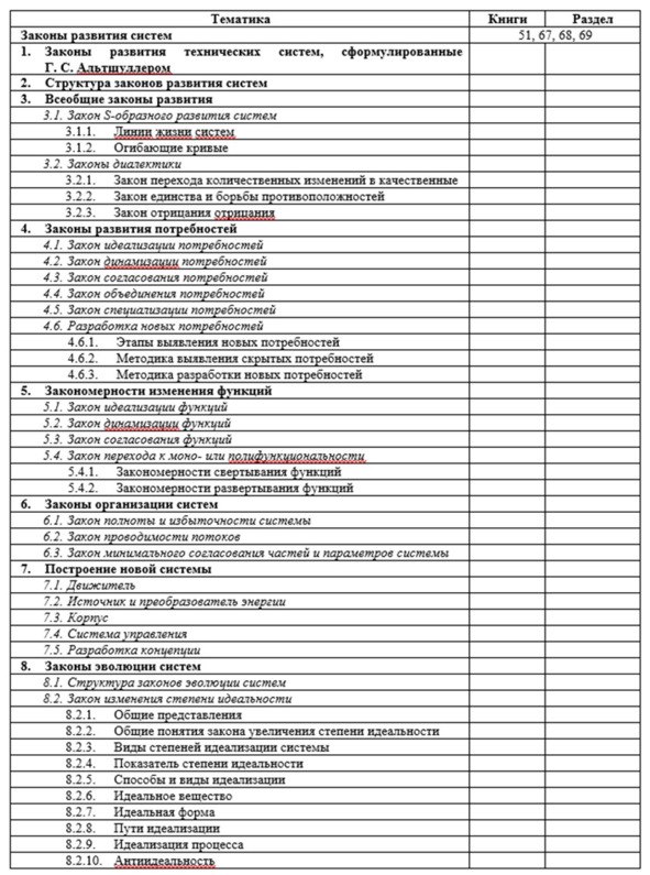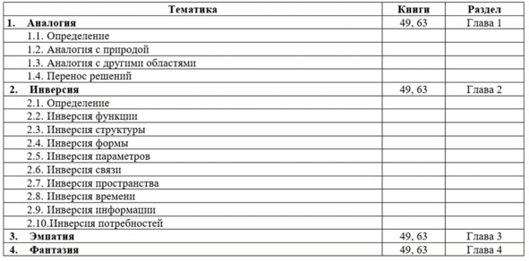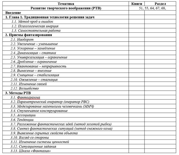 Если вам больше нравится попредметное изучение материала, то вы можете использовать практически любую из книг Альтшуллера и некоторых других авторов [11], [14], [15], [23], [24], [28], [29], [39], [40], [44], [46], [47], [48].