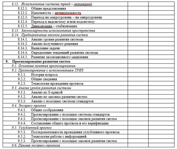 В приложении 4 советуем ознакомиться с учебными планами и программами «Методы изобретательства (п. 2.1).