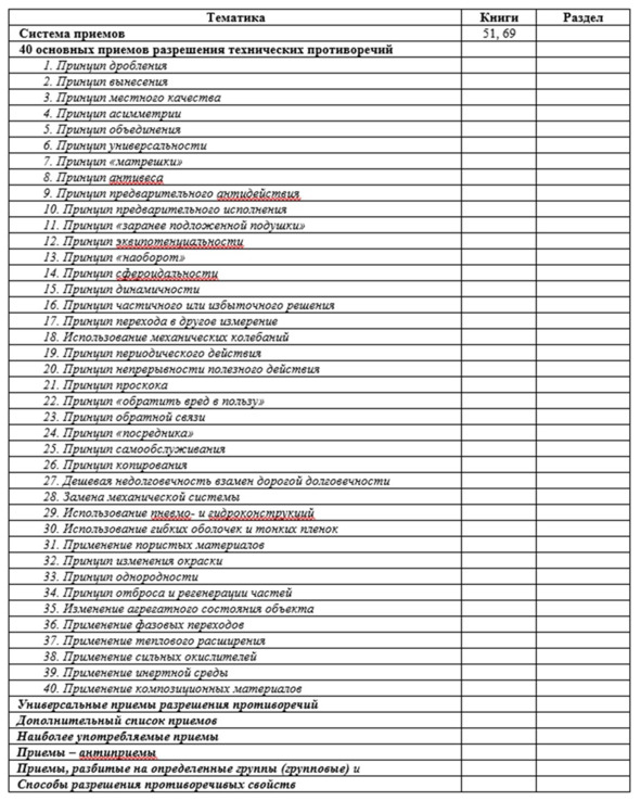 – Приемы разрешения противоречий [74];