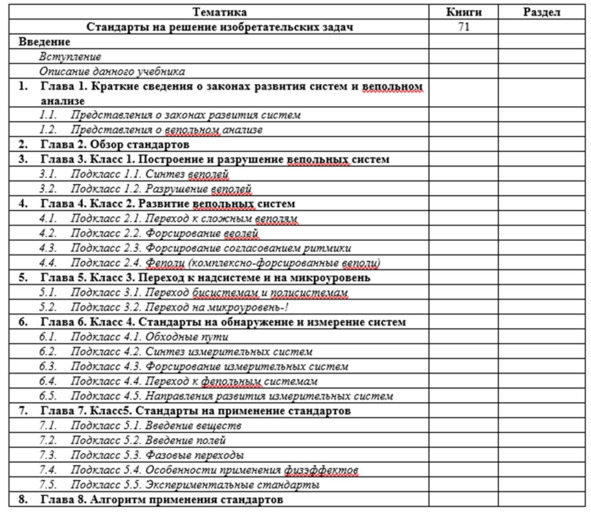 Если вы предпочитаете попредметный способ изучения ТРИЗ, то рекомендуем вам учебники автора: бумажный [51] и электронный [69]. В них изложены все основные составляющие ТРИЗ в достаточном объеме для решения сложных задач.