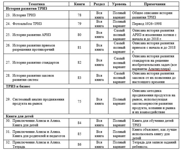 – Тематика ТРИЗ, освещенная в книгах автора;