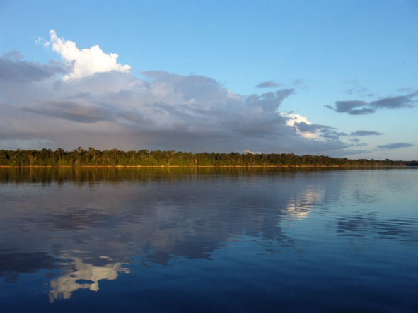 Окружающий пейзаж по-прежнему одновременно потрясающий и однообразный – вода и джунгли, джунгли и вода. Великая река, подпитываемая постоянно идущими дождями, затопила лес – прибрежные деревья стоят в воде, и от этого кажется, что граница между небом и водой размыта.