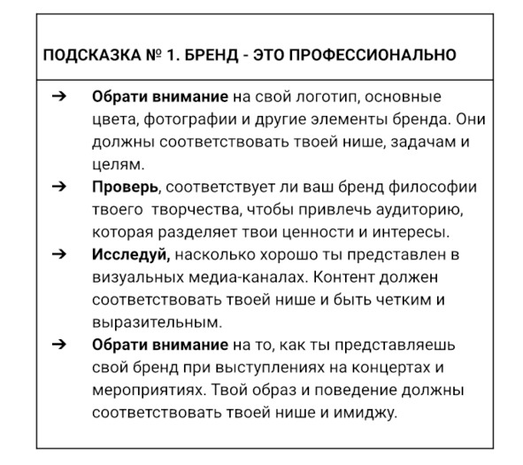 Подсказки по формированию личного бренда артиста помогут охватить все аспекты, важные для создания удачного личного бренда и сделать карьеру более успешной и продуктивной.