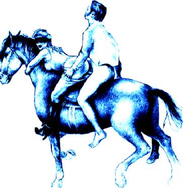 Сделав первый круг, жокеи, по команде, развязали завязки на дамских панталонах и спустили их. Дамы закрутились и завопили, пытаясь сопротивляться, но оказались надёжно привязанными к лошадям. Аппетитные дамские зады явились почтеннейшей публике, голые молодцы приникли к ним всем телом, и… Под музыку и вопли дам весёлое представление началось.