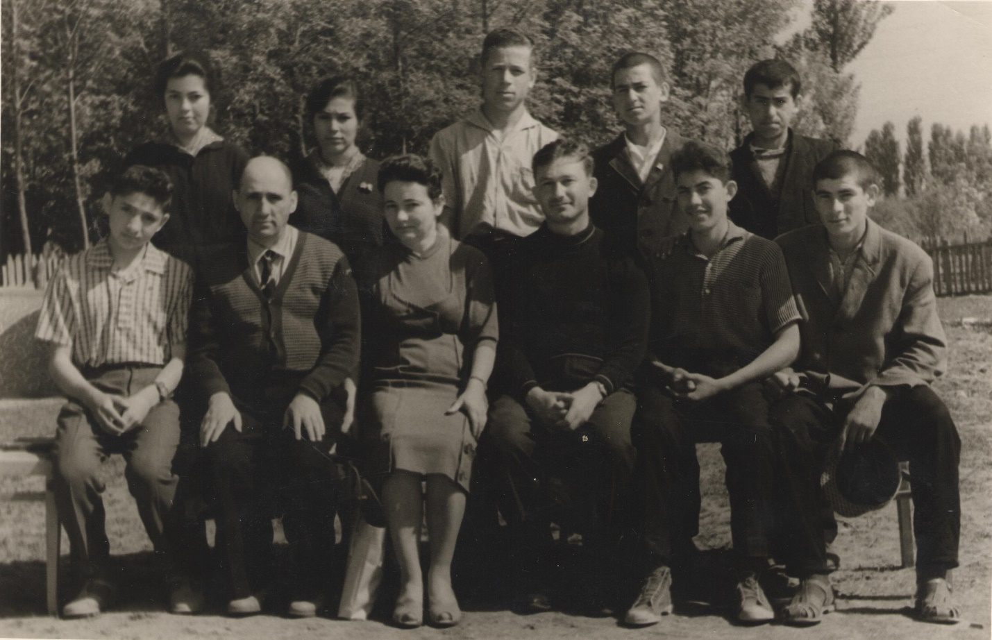 Лачинов А.С. с учащимися 8 кл., село Исти-Су ЧИАССР,1964 г.