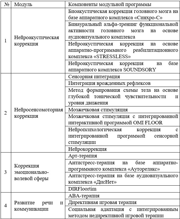 Компоненты мультимодальной системы психолого-педагогической реабилитации