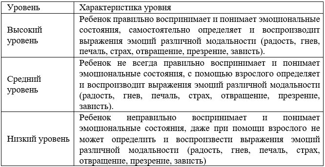 Параметры для определения уровня эмоционального развития