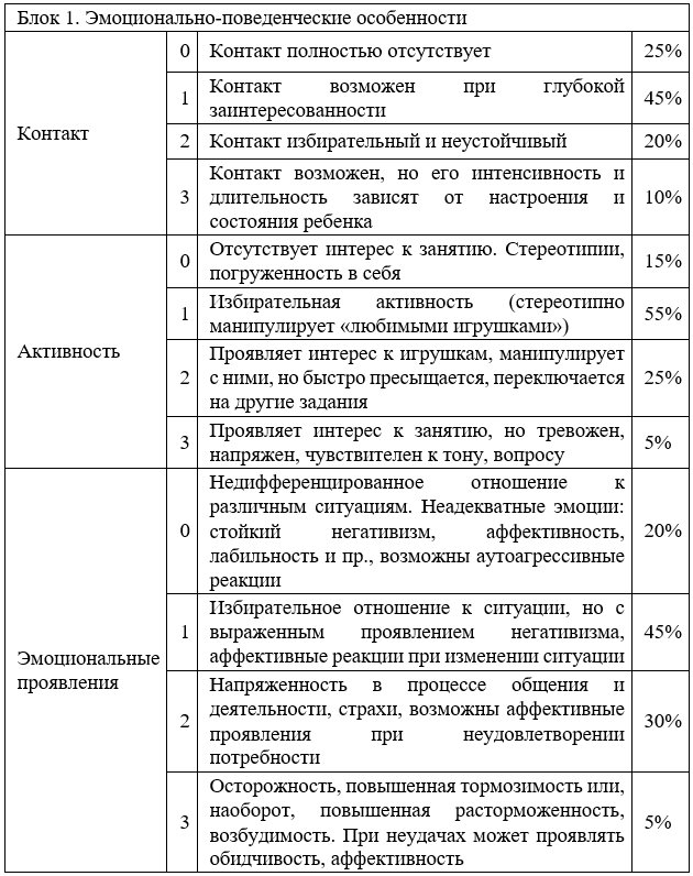 – Эмоционально-поведенческие особенности: контакт, активность, эмоциональные проявления;