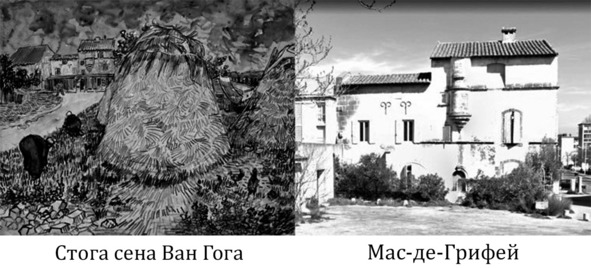 Вывод: Рассказ мадам Кальман о встрече с Ван Гогом несовместим с ее собственной биографией. Мы знаем много важных подробностей жизни художника в Арле из его писем и других свидетельств. Маловероятно, что он часто покупал холсты или что-то еще в магазине Кальман. Если предположить, что она придумала эту историю ради привлечения внимания, то Жанна должна была сделать это более убедительно. Оправдание путаницы ее преклонным возрастом несостоятельно.Встреча с Ван Гогом является хорошим доказательством того, что мадам Кальман на самом деле была Ивонной, которая таким образом развивала ложь о своей личности. Мы оцениваем это как убедительное свидетельство и присваиваем ему коэффициент вероятности 5 в пользу подмены.Любопытно, что существует еще одна связь между Ван Гогом и мадам Кальман. В 1888 году Винсент любил рисовать мас-де-Грифей, который в 1949 станет домом доктора Лебра [1], стр. 104. Одна из таких картин, «Стога сена», была скрыта от глаз общественности в течение 116 лет. Она была изъята немцами из Парижа в 1941 году и продана за 30 миллионов долларов 80 лет спустя [29].