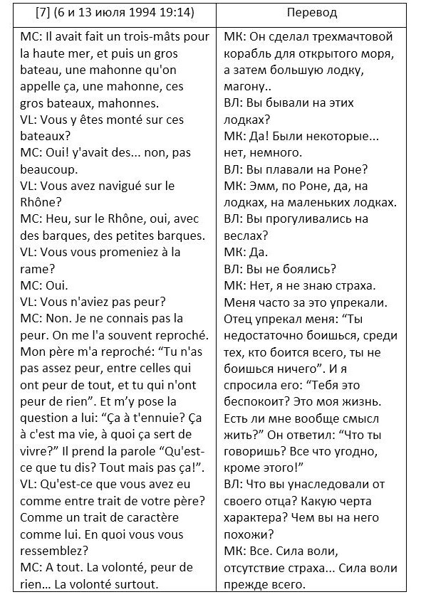Мы можем подтвердить, что диалог во французской версии книги валидаторов хорошо отражает аудиозапись интервью. Вот наша версия полной стенограммы: