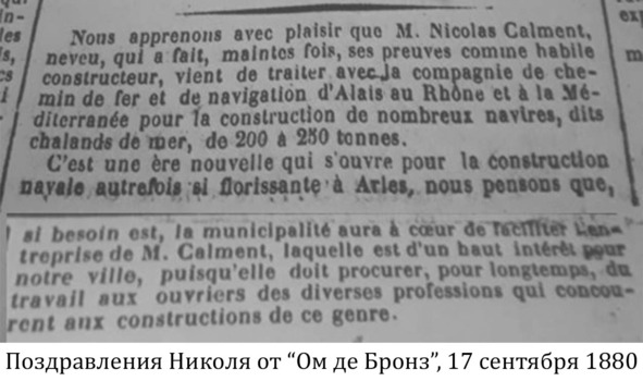 Шарбон, Минерай, Кокс, Марсельеза, Авиньоннеза, Эльзасьен, Альбигео, Ангумуа, Беарне, Ле-Лоррен, Тулоннез, Борделез, Лонгедосиен, Провансаль, Фламан, Пикар, Норманд и Гаскон.В то время Николя Кальман и его партнер Жан Батист Кальман планировали расширение своего бизнеса. Городской совет частично удовлетворил их просьбу о предоставлении им большего пространства для строительных работ, и Кальманы получили право строить суда в средиземноморском порту Бук. К сожалению, Жан Батист умер в 1885 году в возрасте 36 лет.
