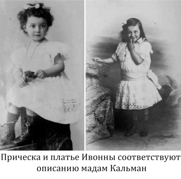 Мадам Кальман описала белое платье с английской вышивкой и синий пояс с бантом. Этот костюм соответствует детской фотографии Ивонны, сделанной два десятилетия спустя.