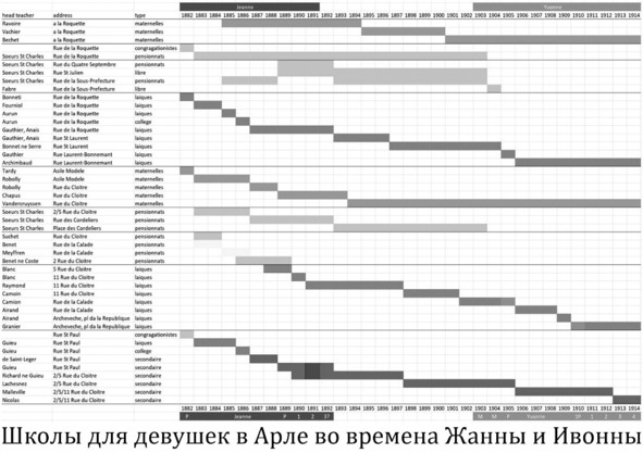 Когда Жанна училась в старшей школе, ее дорога проходила по улице Рокетт, через площадь Пуасоннери и далее по улице Пуассоннери. Затем произошли некоторые изменения, и во времена Ивонны маршрут стал состоять из четырех улиц: Рокетт, площадь Поля Думера, улица Порселе и площаль Антонель (две последние улицы были наследниками улицы Пуассоннери).