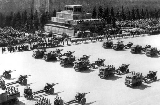 Тракторы СТЗ-5 с гаубицами М-30 и М-10 на буксире на параде на Красной площади. Для механизированных соединений эти тягачи уже не годились.