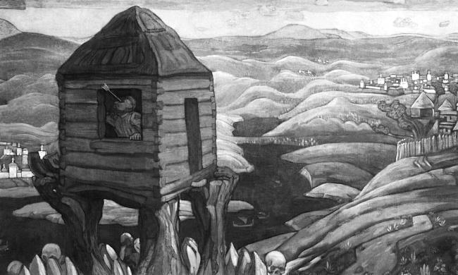 Если посмотреть на этнографические источники Русского Севера, в них также можно обнаружить необычную традицию. В древности умерших хоронили в домовинах – домиках, расположенных над землей. Как правило, это строение располагалось на очень высоких пнях с выглядывающими из-под земли корнями, похожими на куриные ноги, либо на высоких деревянных опорах-сваях. Домовины по традиции располагались таким образом, чтобы отверстие в них было обращено в противоположную от селения людей сторону, к лесу. Покойников, как известно, хоронили ногами к выходу, поэтому, если заглянуть в домовину, можно было увидеть лишь ноги, что опять отсылает к выражению о костяной ноге.