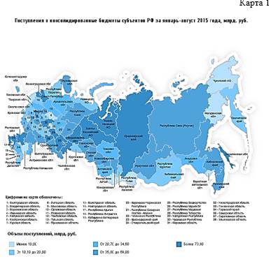 Таким образом, расхождения в доходной части бюджетов субъектов федерации значительны12. (Карта 1)