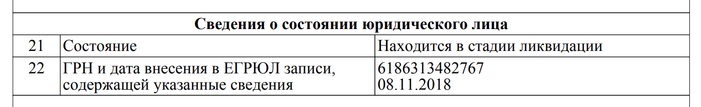 Рис. 1. Фрагмент выписки из ЕГРЮЛ, содержащий сведения о состоянии юридического лица, которое находится в стадии ликвидации