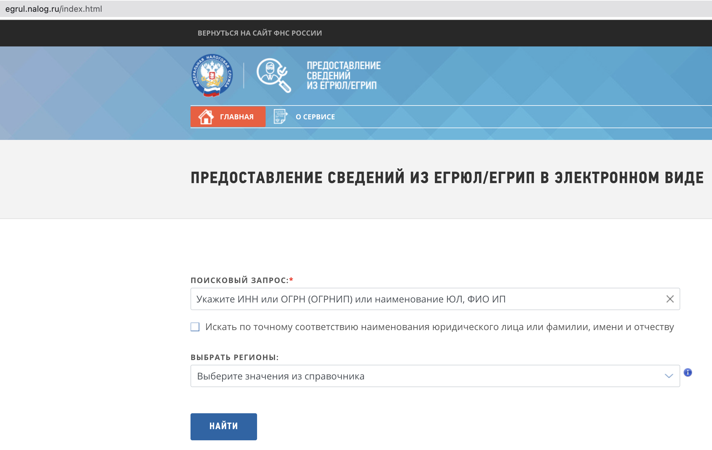Рис. 2. Интерфейс сервиса «Предоставление сведений из ЕГРЮЛ / ЕГРИП»