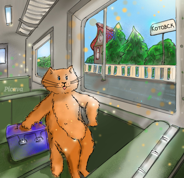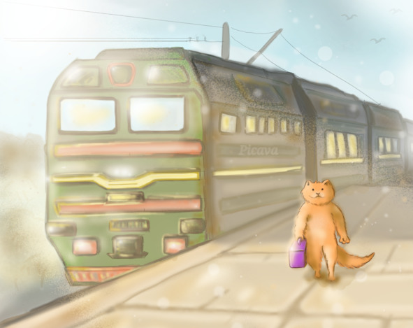 Маршрут был отлажен: купить в кассе билет, пройти поближе к «голове» поезда и сесть в третий вагон. В пути Кот любил читать книжку, но чаще просто смотрел в окно. За многие поездки он хорошо изучил эти места, но каждый раз всё равно находил что-то, что удивляло. То замечал, как дерево подросло и склонилось ниже к реке, будто бы любуясь собой, то вдруг облака начинали бежать наперегонки с поездом. А иногда в полях скакали смешные длинноногие жеребята, резвясь среди высокой травы. В дождливые дни Кот просто считал капельки, ползущие по стеклу, и с интересом смотрел, как в них отражается мир. Столько занятий можно было придумать в пути, столько маленьких открытий! А сколько интересных разговоров было в этих электричках – и не сосчитать! Вспоминая их, Котик каждый раз довольно распушался.