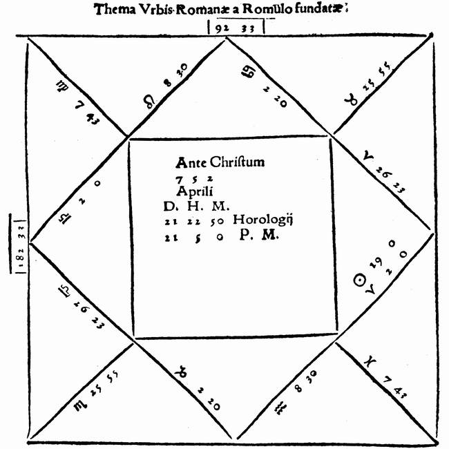 Одним из первых римских астрологов был Нигидий Фигул. Фигул по латыни гончар, он первый употребил образ гончарного круга для иллюстрации неповторимости личного гороскопа. Другой римский астролог Таруций составил гороскоп городу Риму. Из него следовало, что Рим возник 21 апреля 753 г. до н.э. Эта дата на основании этого гороскопа и по сей день считается датой основания Рима. При императоре Августе астрология получила от него официальную санкцию и широко распространилась по всему Риму и империи.