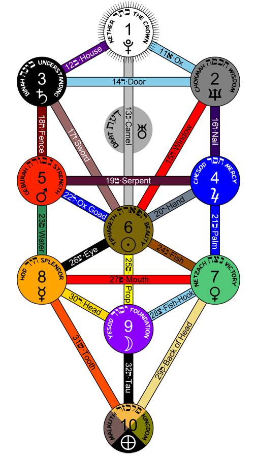 По каббале каждый человек создан по образу и подобию первочеловека или архетипа человека – Адама Кадмона. Адам Кадмон – небесный человек или макрокосмос. Он сотворен 10 божественными эманациями: сефирми. Эти сефиры подобны концентрическим планетным сферам и представляют собой излучения или эманации Бога. Сефиры это основные формы всякого мыслимого Бытия. Созданная с помощью их Вселенная, в зависимости от отдаления от первоисточника делится на различные миры: первый, наиболее близкий к Богу – Ацилут, мир сияний, дальше идут мир творения «Бриа» это мир идей, мир «Иецира» или мир создания и, мир «Асиа» – мир делания – это наш видимый мир. Эти миры не отделены строго один от другого, но взаимно проникают друг в друга. Человек по каббале принадлежит одновременно ко всем этим мирам. Это учение каббалы о 10 Сефирах и мирах было впоследствии очень развито уже в Европе, соединившись со сходным учением герметизма и образовав уже несколько иную западную разновидность Каббалы. Особенно сильны идеи каббалы во французских школах астрологии, где каждая планета находится под влиянием соответствующего ангела Каббалы и связана с определенной Сефирой. Так в разных учениях и школах продолжала жить астрология после заката античного мира.