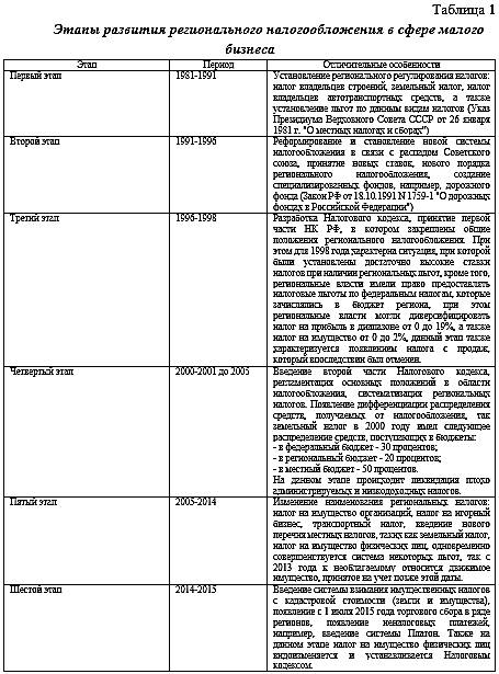 Так, автор выделяет следующие этапы регионального развития налогообложения в сфере малого бизнеса: