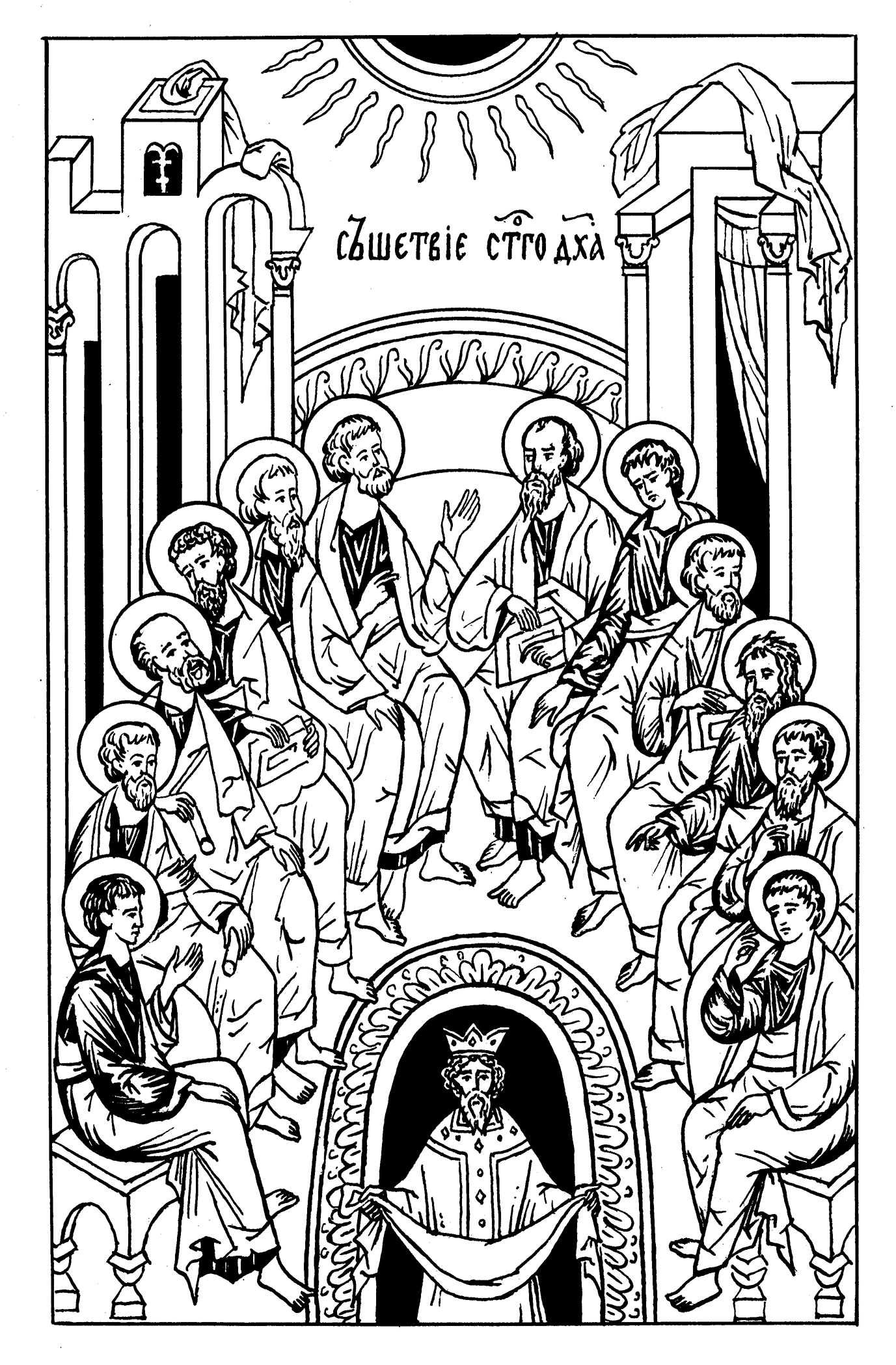 13И, придя, взошли в горницу, где и пребывали, Петр и Иаков, Иоанн и Андрей, Филипп и Фома, Варфоломей и Матфей, Иаков Алфеев и Симон Зилот, и Иуда, брат Иакова.