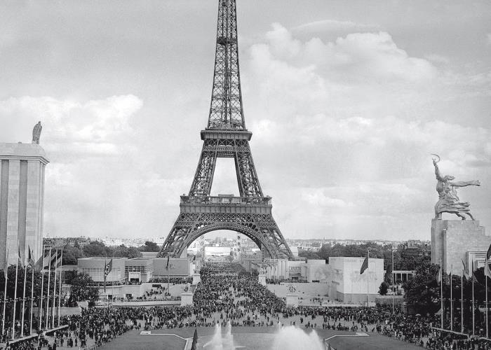 Скульптура «Рабочий и колхозница» на всемирной выставке в Париже. 1937 год