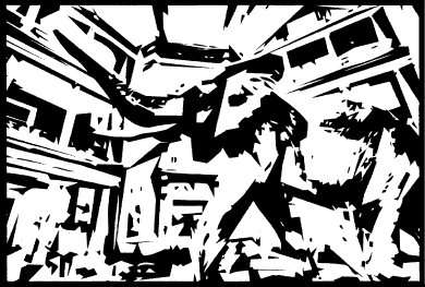 Саша продолжала работать. Большой зеленый прямоугольник, который она нарисовала сначала, постепенно заполнялся черными угловатыми фигурами и зигзагами. Другую руку она держала отставленной в сторону, перпендикулярно к туловищу, которое словно одеревенело. Она как будто пыталась сохранить равновесие, сопротивляясь некоей потусторонней силе.