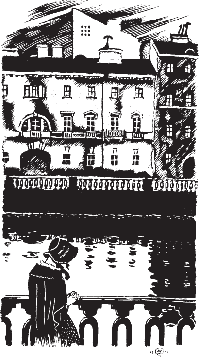 В стороне́ стоя́ла же́нщина и, по-ви́димому, о́чень внима́тельно смотре́ла на гря́зную во́ду кана́ла. Она́ была́ хорошо́ оде́та. «Стра́нно! – поду́мал я, – наве́рное, она́ о чём-нибу́дь ду́мает», и вдруг я останови́лся: де́вушка пла́кала.