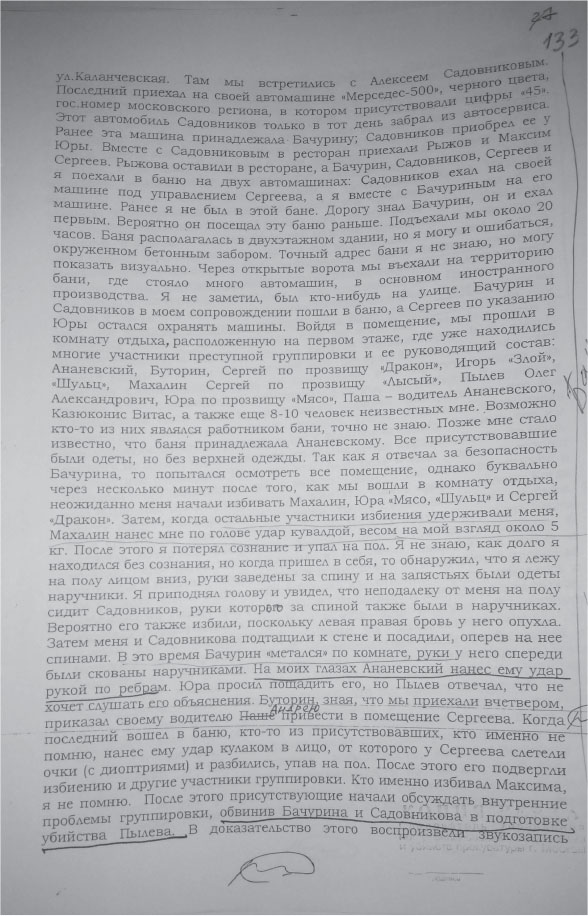 Ошибка – по другим показаниям и рассказам Садовникова убивал Ананьевский. Вполне возможно, что последнюю фазу, то есть само удушение провел и Махалин. Автору был передан сам разговор между Садовниковым и Ананьевским, перед убийством первого. Так же автора поддерживают несколько непосредственных участников, действительно видевших, как все происходило. Фотокопии приведены для полного понимания читателем состояния всех участников тех событий.