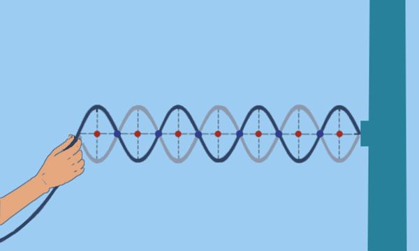 …то, когда волна дойдет до конца прыгалки и упрется в место крепежа, она оттолкнется, пойдет обратно, дойдя снова до руки – затухнет, а прыгалка провиснет. А теперь представим, что «некто» без остановки «дергает прыгалку за хвост». Что происходит? Верно! Волна станет непрерывной, и итогом процесса, становится образование стоячей волны.