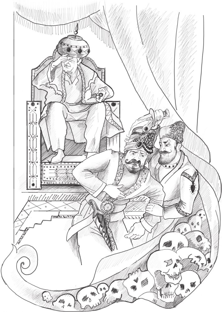 Ağa Məhəmməd xan. Həzərat, and olsun Məhəmmədhüseyn xanın qəbrinə və bu əziz qardaşlarımın canına, mən öz şəxsi qərəzim üçün çalışmıram. Mən İranın dərdindən ötrü çalışıram. Özünüz görürsünüz, məmləkət parça-parça olub, hər şəhərdə bir padşah əmələ gəlib. Gürcüstan valisi İrakli bir yandan Rusiya dövləti ilə irsal-mərsulə22 girib, istəyir, müstəqil padşah olsun. Qarabağda İbrahim xan həmçinin İrandan ayrılmaq istəyir. Cavad xan gəncəli, Mustafa xan irəvanlı həmçinin. Məgər bunu Allah götürər? Görün boynuma nə ağır yük götürmüşəm.