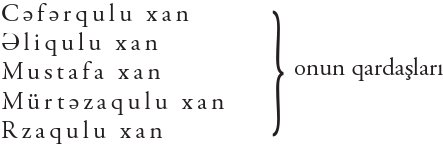 Cəfərqulu xan, Mustafa xan, Əliqulu xan və sərkərdələr daxil olurlar.