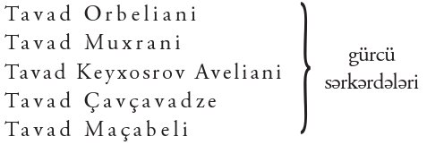 Tavad Keyxosrov Aveliani (üçüncü sərkərdə). Doğrudur, İranın qoşunu rəşiddir, amma çətini odur ki, bir dəfə oxları daşa toxunsun. O saat görərsən, qayıdıb qaçdılar.