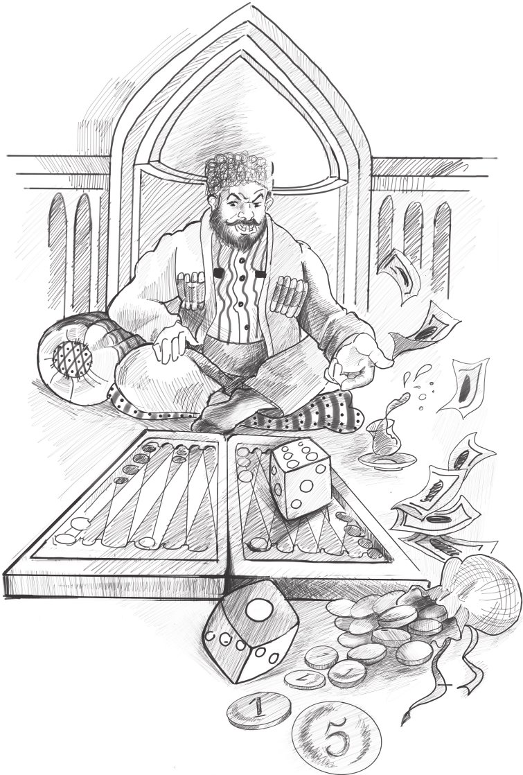 Hacı Mehdi əyləşib döşəklərin birinin üstə, Şiraz qəlyanı damağında. Bir azdan sonra başını qalxızıb üzünü tutur qapıya, nökəri çağırır.