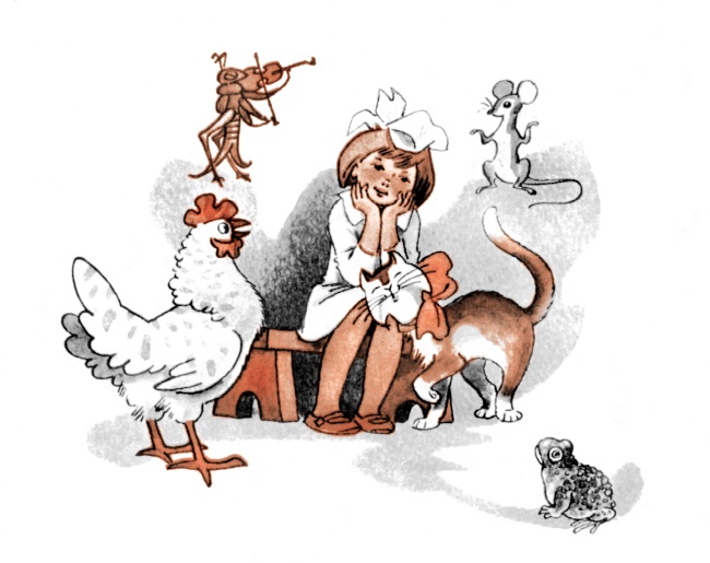 – И сверчок у неё, и Шлёпа, и курица, и кошка, и мышка. Столько богатства – одной.