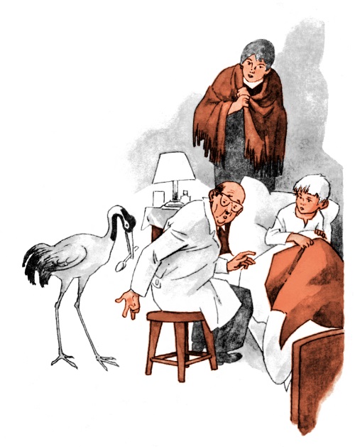 А врач поглядел на Журавлика, очень удивился, а потом засмеялся и попросил больного: