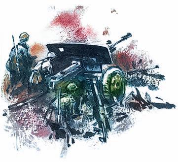 Продолжается жаркий бой. Снова выходят из строя фашистские танки. Но и снова потеря на батарее. Гибнет вторая пушка. Было четыре, осталось две. Но и две – это тоже сила.