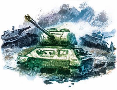 Вступили солдаты в бой. Обрушили артиллеристы огонь на фашистские танки. Удачно они стреляли. Выходят из строя фашистские машины. Но бой есть бой. Тут взаимны всегда потери. Подбили фашисты одну из советских пушек. Было четыре, осталось три.