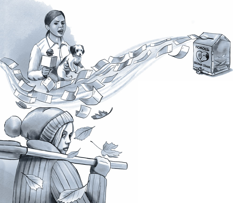 – Это было пожертвование… Это ваша помощь приюту… У нас даже если кто не берёт собак, кто пришёл только посмотреть, – тот просто так жертвует деньги…