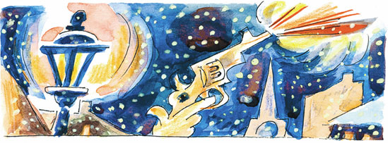 Лишь в одном окошке, у са́мой крыши высокого склада, не было света. И чулок у форточки не висел, несмотря на то что в комнатушке за этим окном жил со своим старым дядюшкой десятилетний мальчик.