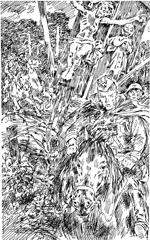 С огромного, в три человеческих роста, креста смотрел на солдат распятый Иисус. Улицы были пустынны, и только лай собак по дворам и едва приметное движение домотканых холщовых занавесок на окнах показывали, что люди, запуганные бандитскими шайками, внимательно присматриваются к проходящим по деревне солдатам.