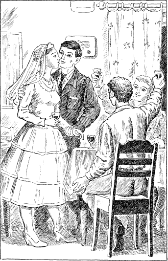 В небольшой комнате вынесены кровати, сдвинуты столы. Свадебный ужин. Букин и Маша (жених и невеста), Фролов. Из гостей неумеренной непосредственностью выделяется однокурсник Букина по прозвищу Гомыра. Прочих, сидящих за столом, удобно назвать так: Комсорг, Веселый, Серьезный, Красавица. Разгар веселья.Комсорг. Товарищи! Внимание, товарищи…