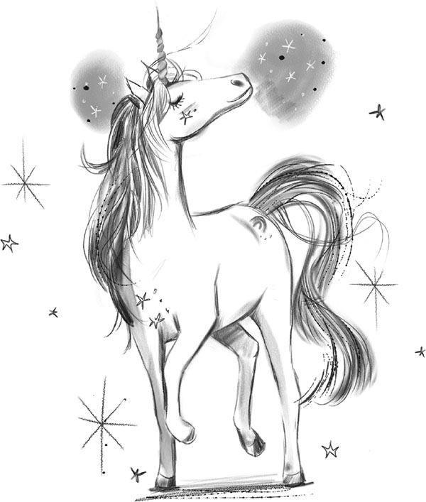 Услышав негромкое ржание, девочка осознала, что мисс Примроуз вовсе не одна на сцене. За кулисами ждали юные единороги, все как один с нежно светящейся белой шерстью, сверкающими рогами и шелковистыми гривами и хвостами. Одни застенчиво жались к стенке, другие рвались вперёд, прядая острыми ушами.