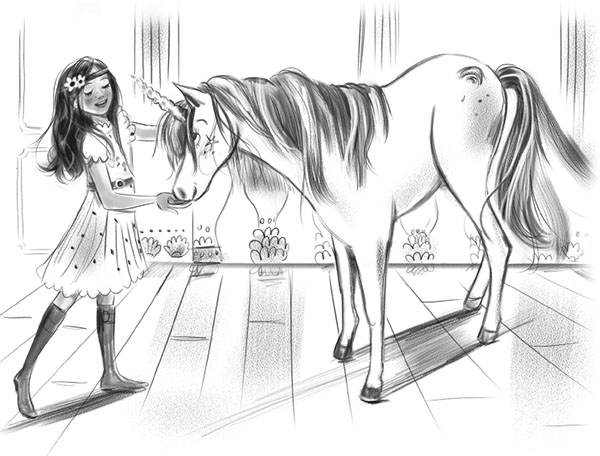 Оливия и её единорог Снежинка последовали за ними. Скарлетт и Изабель спешили во двор со своими единорогами, Вспышкой и Тучкой, подначивая друг друга устроить гонку. София и Ава оказались последними.