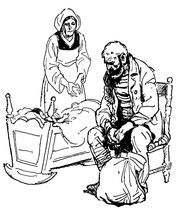 Взад и вперед от приморской деревни в город составляло не менее трех часов скорой ходьбы, но Мери не послушалась советов рассказчицы. «Довольно мне колоть вам глаза, – сказала она, – и так уж нет почти ни одной семьи, где я не взяла бы в долг хлеба, чаю или муки. Заложу колечко, и кончено». Она сходила, вернулась, а на другой день слегла в жару и бреду; непогода и вечерняя изморось сразили ее двухсторонним воспалением легких, как сказал городской врач, вызванный добросердной рассказчицей. Через неделю на двуспальной кровати Лонгрена осталось пустое место, а соседка переселилась в его дом нянчить и кормить девочку. Ей, одинокой вдове, это было не трудно. «К тому же, – прибавила она, – без такого несмышленыша скучно».