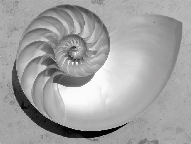 Рис. 1.3. Раковина современного наутилуса в разрезе выглядит как логарифмическая спираль