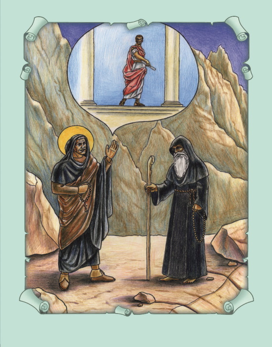 Тогда монах в назидание ему рассказал о своей прежней роскошной, богатой жизни в мире, от которой он добровольно отказался, чтобы подвизаться в пустынной келье для спасения души и всецелого служения Богу. И то, что египтянину показалось большим богатством, имевшимся у монаха, таким образом, было малой тенью его прежнего состояния, когда он жил в Риме и служил у царя. И сказал он: